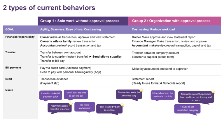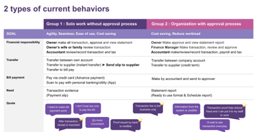 The user interview sessions revealed two primary working processes among users: individuals who are the sole users of the app, and those who manage accounts used by both makers and approvers.