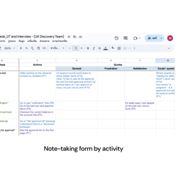 At the end of each day, we conducted a review of the note-taking forms together, followed by an end-of-day briefing session. The following day was dedicated to summarising key insights and planning for the next round of research sessions.