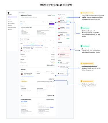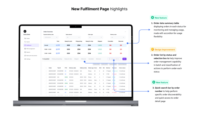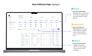 1) Dashboard Design: The new dashboard features a data summary, enabling store admins to easily track the progress of fulfilment activities and ensure timely order completion.